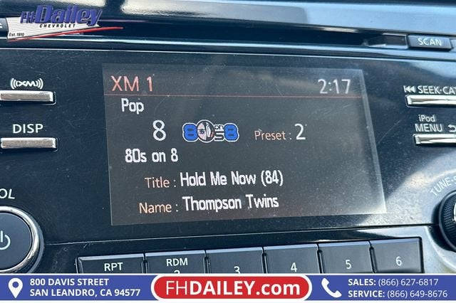 This vehicle is equipped with: 4 Speakers, 4-Wheel Disc Brakes, ABS brakes, Activation Disclaimer, Air Conditioning, AM/FM radio: SiriusXM, Anti-whiplash front head restraints, Brake assist, Bumpers: body-color, CD player, Cloth Seat Trim, Driver door bin, Driver vanity mirror, Dual front impact airbags, Dual front side impact airbags, Electronic Stability Control, Floor Mats & 2-PC Cargo Area Protector, Four wheel independent suspension, Front anti-roll bar, Front Bucket Seats, Front Center Armrest w/Storage, Front reading lights, Illuminated entry, Low tire pressure warning, Occupant sensing airbag, Outside temperature display, Overhead airbag, Overhead console, Panic alarm, Passenger door bin, Passenger vanity mirror, Power door mirrors, Power steering, Power windows, Radio data system, Radio: AM/FM/CD/AUX, Rear anti-roll bar, Rear seat center armrest, Rear window defroster, Rear window wiper, Remote keyless entry, Security system, Speed control, Speed-sensing steering, Split folding rear seat, Spoiler, Steering wheel mounted audio controls, Tachometer, Telescoping steering wheel, Tilt steering wheel, Traction control, Trip computer, Variably intermittent wipers, and Wheels: 17 Steel w/Full Covers Family Owned and Operated for Since 1910 FH Dailey Chevrolet has been serving San Leandro and the San Francisco, Oakland Bay Area since 1910. We work hard so you don't have too.