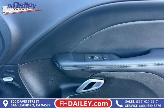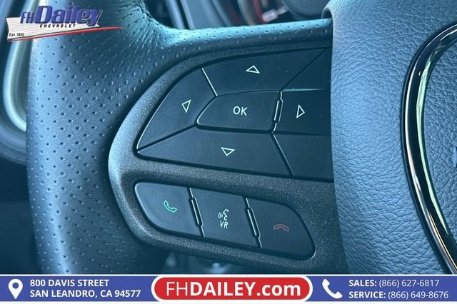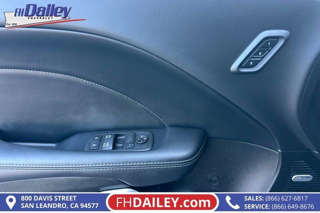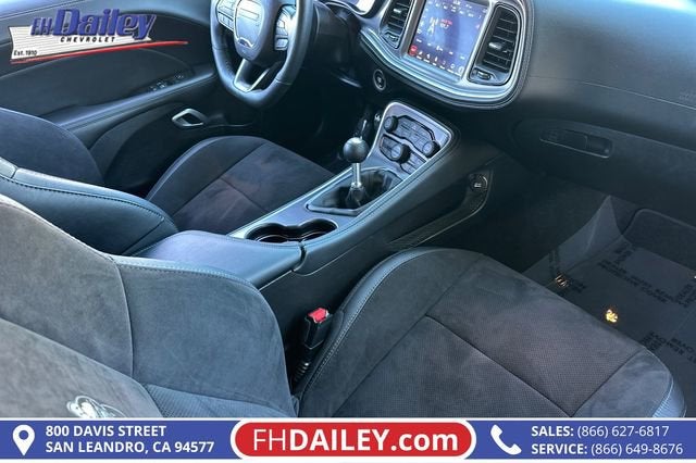 This vehicle is equipped with: Alpine Audio Group w/Subwoofer (506 Watt Amplifier, 9 Amplified Speakers w/Subwoofer, and Surround Sound), Driver Convenience Group (Blind Spot & Cross Path Detection, Body Color Exterior Mirrors, Exterior Mirrors w/Heating Element, High-Intensity Discharge Headlamps, and Power Multi-Function Foldaway Mirrors), Dynamics Package (Brembo 6-Pot Fixed Front Caliper Brakes and Flat-Bottom Steering Wheel), Plus Package (Door Trim Panel w/Ambient Lighting and Premium-Stitched Dash Panel), Quick Order Package 23G R/T Scat Pack, Technology Group (Auto High Beam Headlamp Control and Rain Sensitive Windshield Wipers), 1-Yr SiriusXM Guardian Trial, 4-Wheel Disc Brakes, 6 Speakers, ABS brakes, Adaptive Damping Suspension, Air Conditioning, Alloy wheels, AM/FM radio: SiriusXM, Anti-whiplash front head restraints, Apple CarPlay, Apple CarPlay/Android Auto, Auto-dimming Rear-View mirror, Automatic temperature control, Brake assist, Bumpers: body-color, Compass, Compass Gauge, Delay-off headlights, Driver door bin, Driver vanity mirror, Dual front impact airbags, Dual front side impact airbags, Electronic Stability Control, Emergency communication system: SiriusXM Guardian, For Details, Visit DriveUconnect.com, Four wheel independent suspension, Front anti-roll bar, Front Bucket Seats, Front Center Armrest, Front dual zone A/C, Front fog lights, Front License Plate Bracket, Front reading lights, Fully automatic headlights, Garage door transmitter, Google Android Auto, GPS Antenna Input, Heated door mirrors, Heated front seats, Heated steering wheel, Illuminated entry, Integrated Center Stack Radio, Integrated Voice Command w/Bluetooth®, Leather Shift Knob, Low tire pressure warning, Media Hub (2 USB, AUX), Outside temperature display, Overhead airbag, Overhead console, Panic alarm, ParkView Rear Back-Up Camera, Passenger door bin, Passenger vanity mirror, Power door mirrors, Power driver seat, Power steering, Power windows, Radio data system, Radio: Uconnect 4C w/8.4 Display, Rear anti-roll bar, Rear reading lights, Rear seat center armrest, Rear window defroster, Red Brake Calipers, Remote keyless entry, Scat Pack Logo Houndstooth Seat, Security system, SiriusXM Satellite Radio, Speed control, Speed-sensing steering, Split folding rear seat, Spoiler, Sport steering wheel, Steering wheel mounted audio controls, Tachometer, Telescoping steering wheel, Tilt steering wheel, Traction control, Trip computer, USB Host Flip, Variably intermittent wipers, Wheels: 20 x 9.0 Lo Gloss Granite Crystal, and Wheels: 20 x 9.5 Low Gloss Black Drag (DISC) Family Owned and Operated for Since 1910 FH Dailey Chevrolet has been serving San Leandro and the San Francisco, Oakland Bay Area since 1910. We work hard so you don't have too.