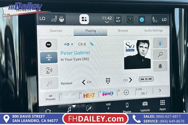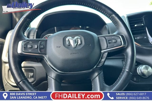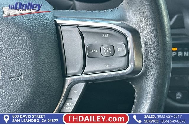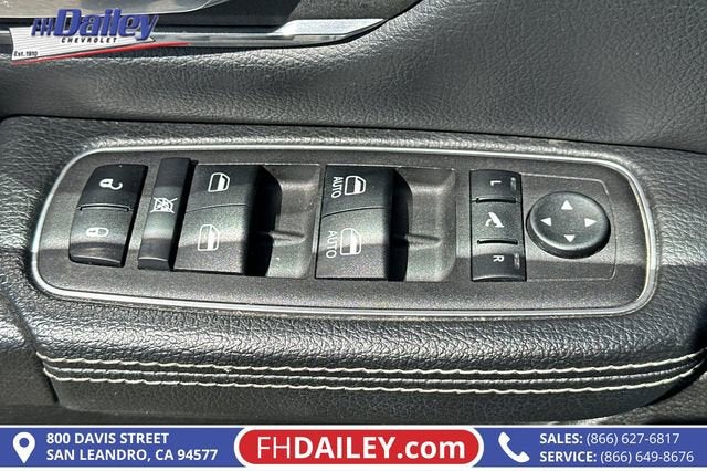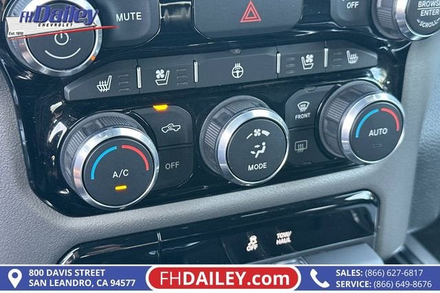 This vehicle is equipped with: Quick Order Package 27H Laramie, 10 Speakers, 3 Rear Seat Head Restraints, 3.21 Rear Axle Ratio, 4 Way Front Headrests, 4-Wheel Disc Brakes, 48V Belt Starter Generator, 4G LTE Wi-Fi Hot Spot, ABS brakes, Air Conditioning, Alloy wheels, AM/FM radio: SiriusXM with 360L, Apple CarPlay, Apple CarPlay/Android Auto, Audio memory, Auto-dimming door mirrors, Auto-Dimming Exterior Driver Mirror, Auto-dimming Rear-View mirror, Automatic temperature control, Brake assist, Bumpers: chrome, Chrome Exterior Mirrors, Compass, Connected Travel & Traffic Services, Connectivity - US/Canada, Convex Wide-Angle Exterior Mirror Insert, Delay-off headlights, Driver door bin, Driver Seat Memory, Driver vanity mirror, Dual front impact airbags, Dual front side impact airbags, Electronic Stability Control, Exterior Mirrors Courtesy Lamps, Exterior Mirrors w/Heating Element, Exterior Mirrors w/Memory, Exterior Mirrors w/Supplemental Signals, Exterior Parking Camera Rear, For Details, Visit DriveUconnect.com, For More Info, Call 800-643-2112, Front anti-roll bar, Front Center Armrest w/Storage, Front dual zone A/C, Front fog lights, Front License Plate Bracket, Front reading lights, Front Seat Back Map Pockets, Front wheel independent suspension, Fully automatic headlights, Garage door transmitter, Global Telematics Box Module (TBM), Google Android Auto, GPS Navigation, HD Radio, Heated door mirrors, Heated Front Seats, Heated front seats, Heated Steering Wheel, Heated steering wheel, Illuminated entry, Integrated Voice Command w/Bluetooth®, Leather steering wheel, Leather Trim 40/20/40 Bench Seat, Low tire pressure warning, Manufacturer's Statement of Origin, Memory seat, Navigation System, Occupant sensing airbag, Outside temperature display, Overhead airbag, Overhead console, Panic alarm, Passenger door bin, Passenger vanity mirror, Power 2-Way Driver Lumbar Adjust, Power 2-Way Passenger Lumbar Adjust, Power 8-Way Driver & Passenger Seats, Power door mirrors, Power driver seat, Power passenger seat, Power steering, Power windows, Power-Folding Mirrors, Radio data system, Radio: Uconnect 5 Nav w/8.4 Display, RAM Grille Badge - Chrome, Rear 60/40 Folding Seat, Rear anti-roll bar, Rear seat center armrest, Rear step bumper, Remote keyless entry, Security system, SiriusXM Radio Service, SiriusXM w/360L, Speed control, Split folding rear seat, Steering wheel mounted audio controls, Tachometer, Telescoping steering wheel, Tilt steering wheel, Traction control, Trip computer, Turn signal indicator mirrors, Variably intermittent wipers, Ventilated Front Seats, Ventilated front seats, Voltmeter, Wheels: 18 x 8 Aluminum Base Painted, and Wheels: 20 x 9 Premium Paint/Polished Family Owned and Operated for Since 1910 FH Dailey Chevrolet has been serving San Leandro and the San Francisco, Oakland Bay Area since 1910. We work hard so you don't have too.