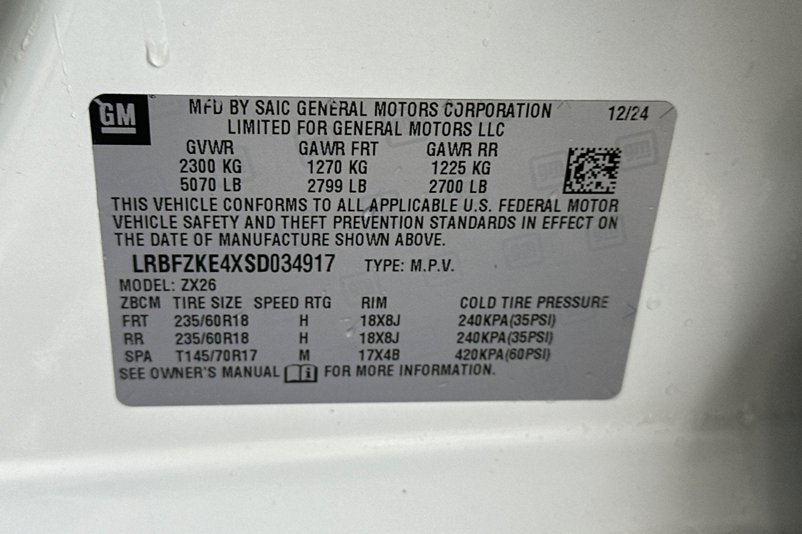 - Tires, P235/60R18 all-season